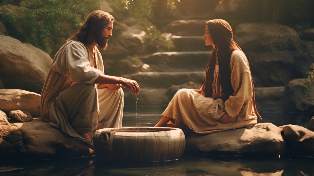 The woman at the well, in the photo above, was not a Jew. She was a Samaritan and was despised by the ‘true Jews’. They were descended from Israelites who were mixed with other peoples after the Assyrian conquest. They had different religious practices and worshiped on Mount Gerizim instead of in Jerusalem and were seen as ethnically and religiously impure. When Jesus stopped at that well and asked her to give Him a drink of water, she was shocked as to why He spoke with her; Him being a Jew and she a Samaritan and a woman at that! Yet, Jesus looked into her heart and saw who she was and the need she had. When He told her all the things about her life that only God would have known, she knew He was the Messiah. She became an instant convert and believed Him. Then she ran to tell others!